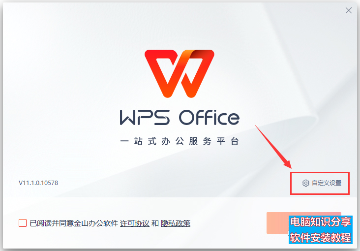 WPS Office最新版下载,WPS Office安装教程 WPS Office简介 WPS Office是由金山软件股份有限公司自主研发的一款办公软件套装,可以实现办公软件最常用的文字、表格、演示等多种功能。具有内存占用低、运行速度快、体积小巧、强大插件平台支持、免费提供海量在线存储空间及文档模板、支持阅读和输出PDF文件、全面兼容微软Office格式。 WPS Office通用安装教程【版本实时更新,安装方法相同】 1.选择下载的安装包右键解压。 2.解压后,右键以管理员身份运行安装程序。 3.点击自定义设置。 4.勾选【已阅读…】,修改路径地址中的首字符C可更改安装位置,本例安装到D盘,点击立即安装。 5.软件安装中…… 6.点击免费使用。 7.点击左上角X。 8.软件安装完成,运行界面如下。 下载列表:【资源来源于网络整理收集,所有资料仅供学习交流】 WPS Office下载 赞 赏 分享 WPS Office下载 您可以选择一种方式赞助本站 支付宝转账赞助 微信转账赞助 分享到各大网站