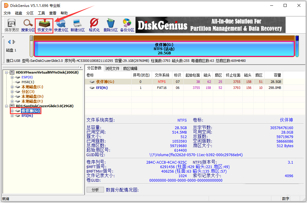 DiskGenius最新版下载,数据恢复使用教程 DiskGenius简介 DiskGenius Pro是一款功能全面的硬盘分区与数据恢复工具,除提供基本的分区管理功能外,还提供了更多实用、便利的功能,包括磁盘分区、磁盘管理、磁盘修复,文件恢复、磁盘复制、虚拟硬盘管理等。可以对分区进行创建、删除、格式化、无损调整、隐藏和分配或删除盘符等,非常易于使用。 DiskGenius使用教程 1.选择下载的安装包右键解压。 2.解压后,右键以管理员身份运行软件。 温馨提示:打开软件时360可能会拦截,若有提示选择允许程序所有操作即可。 3.选择需要恢复数据的分区,点击【恢复文件】。 4.点击开始。 5.恢复文件中…… 6.点击确定。 7.勾选需要恢复的文件,然后右键选择复制到【桌面或指定文件夹】。 8.点击完成。 9.恢复成功,打开恢复文件也无乱码等问题,非常完美。 10.如需恢复其它盘,选择对应的盘符,点击【恢复文件】即可。经测试此版本相当稳定,不会出现恢复过程中闪退情况。 下载列表:【资源来源于网络整理收集,所有资料仅供学习交流】 DiskGenius下载 赞 赏 分享 DiskGenius下载 您可以选择一种方式赞助本站 支付宝转账赞助 微信转账赞助 分享到各大网站