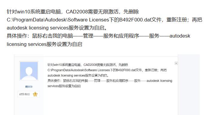问题:针对win10系统重启电脑,CAD2008需要无限激活