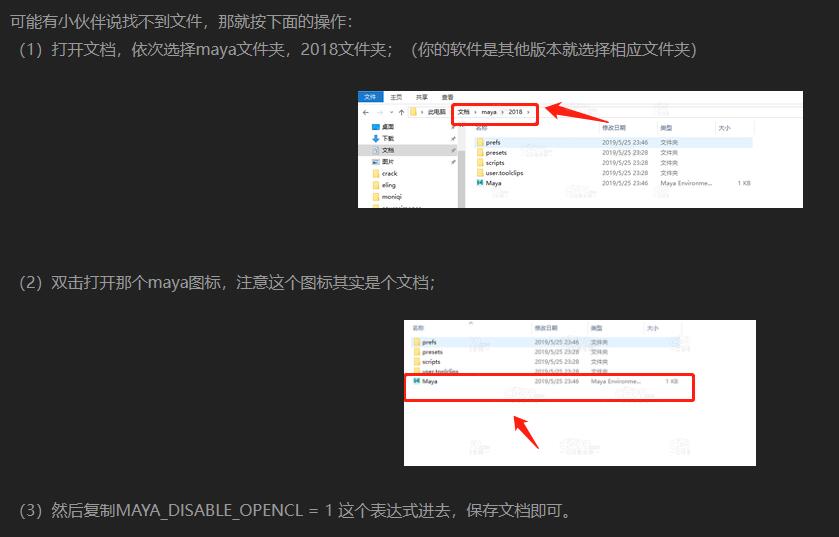 4.禁用OpenCL,在上述路径的<版本>文件夹同路径下的maya.env文件用文本模式打开,添加一行 MAYA_Disable_OpenCL=1即可。