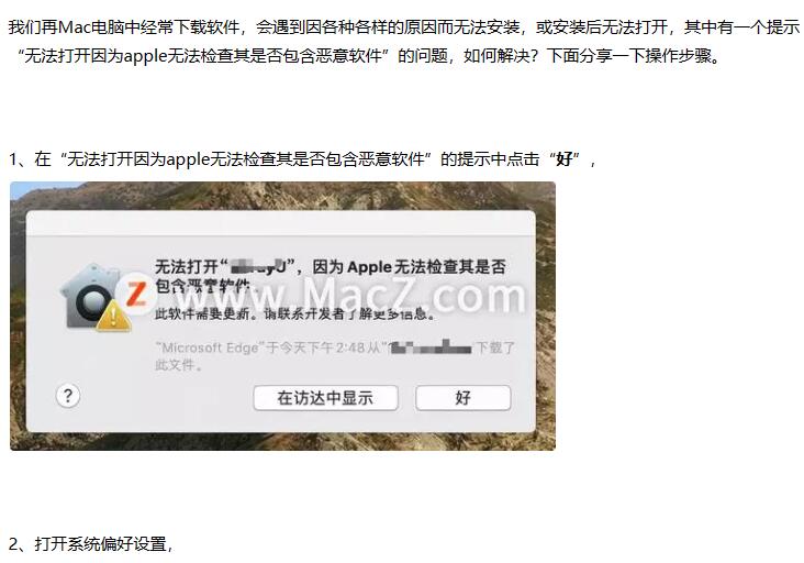 mac系统提示无法打开因为apple无法检查其是否包含恶意软件怎么办?