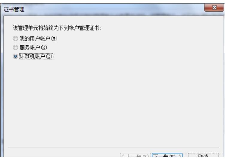 4.选择证书 → 添加 → 计算机账户(其他的保持默认,一直下一步)