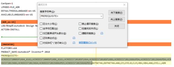 1、打开该文件,搜索"PREREQUISITE="(不含两侧引号),能看到它的后面跟了很多内容。其中"VCREDIST****"(****代表年份)字符串代表着要安装的运行库版本。