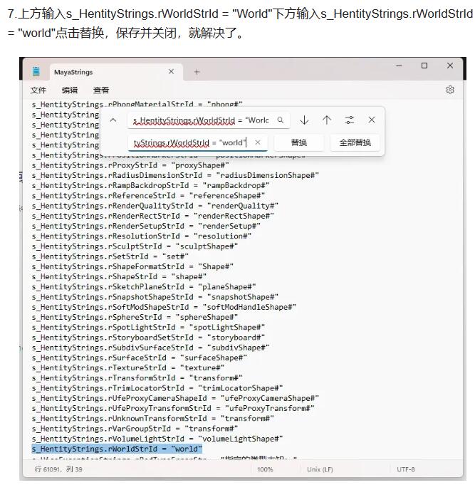 上方输入s_HentityStrings.rWorldStrId = "World"下方输入s_HentityStrings.rWorldStrId = "world"点击替换,保存并关闭
