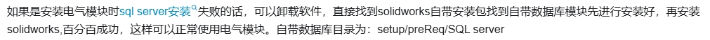 solidworks electrical无法连接到sql server怎么办? solidworks electrical无法连接到sql server怎么办? 解决方案: 在 SOLIDWORKS Electrical 选项界面, SQL Server 下,选择「安装 SQL Server 的新实例」(如图) 名称 localhost\TEW_SQLEXPRESS 的名字改一下,例如后面加个 2(如图) 然后就可以返回到摘要了。 赞 赏 分享 您可以选择一种方式赞助本站 支付宝转账赞助 微信转账赞助 分享到各大网站