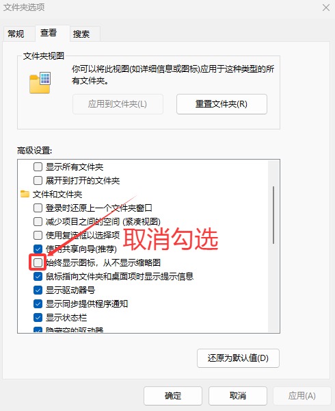 在“显示缩略图,而不是显示图标”前面的√