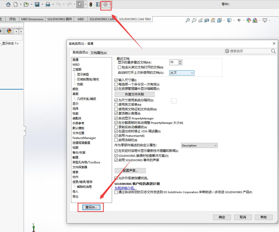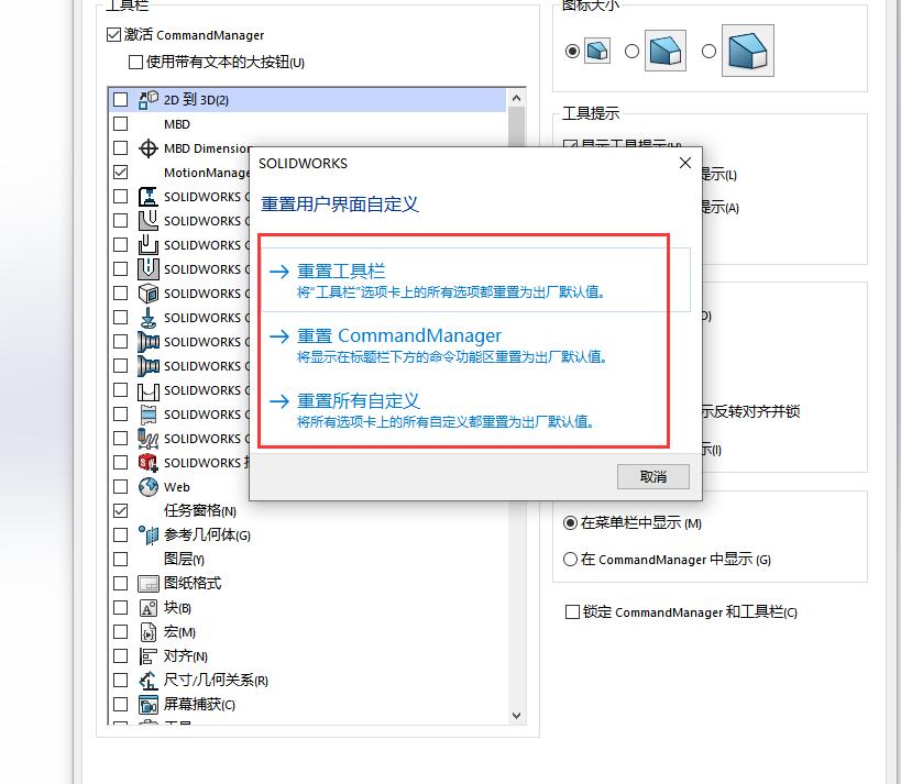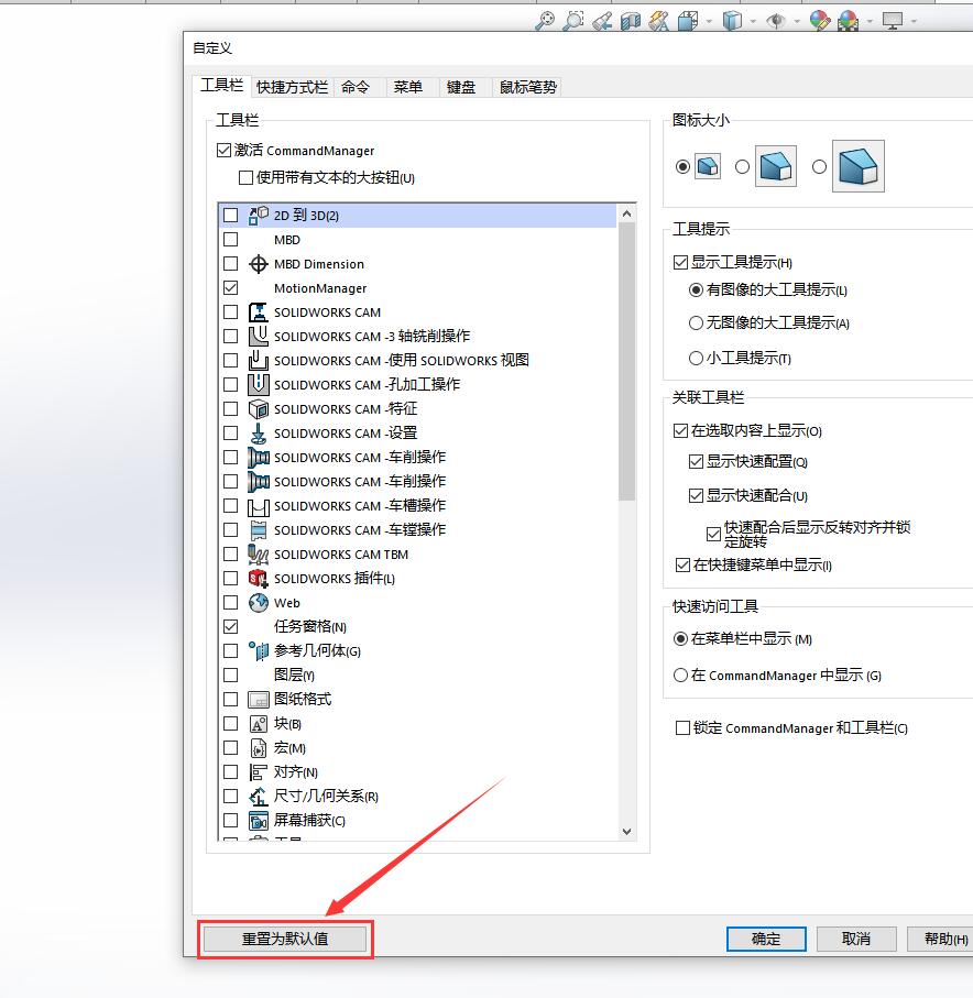 solidworks怎么恢复初始化界面