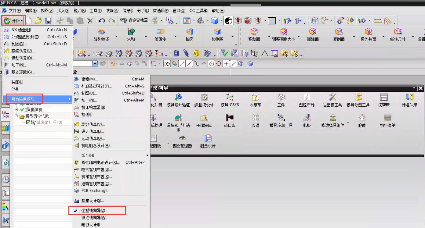 新建-开始-所有应用模块-注塑模向导