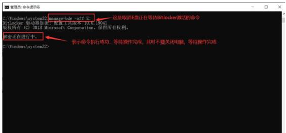 关闭BitLocker发现“正在等待激活” 关闭BitLocker发现“正在等待激活”,解决方法 找到win10系统中BitLocker的位置: 控制面板--->系统安全--->管理BitLocker 此时发现没有“关闭BitLocker”按钮: 方法: 1、鼠标右键选中开始菜单,之后选择“windows powershell(管理员)”,输入“manage-bde -off D:”,这里要注意盘符后面的冒号同样要输入。 2、之后就可以看到系统提示的正在等待激活BitLocker已经不见了 赞 赏 分享 您可以选择一种方式赞助本站 支付宝转账赞助 微信转账赞助 分享到各大网站